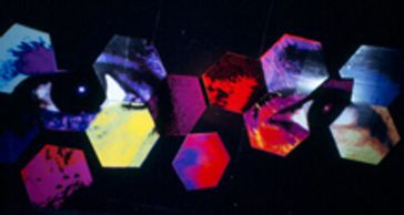 Ontogen flakes were assembled in small and large framed formats as well as in larger sculptural formats. Pavillion (19'x19'x19') was exhibited in the International Sculpture Conference held in Washington D.C. in 1981.
